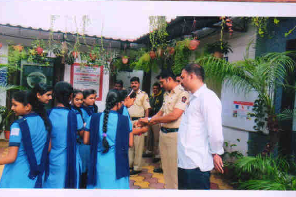 दत्तवाडी पोलीस चौकी येथे राखी बांधता