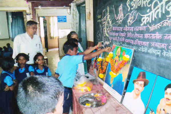 क्रांतीकारकांच्या प्रतिमेस विद्यार